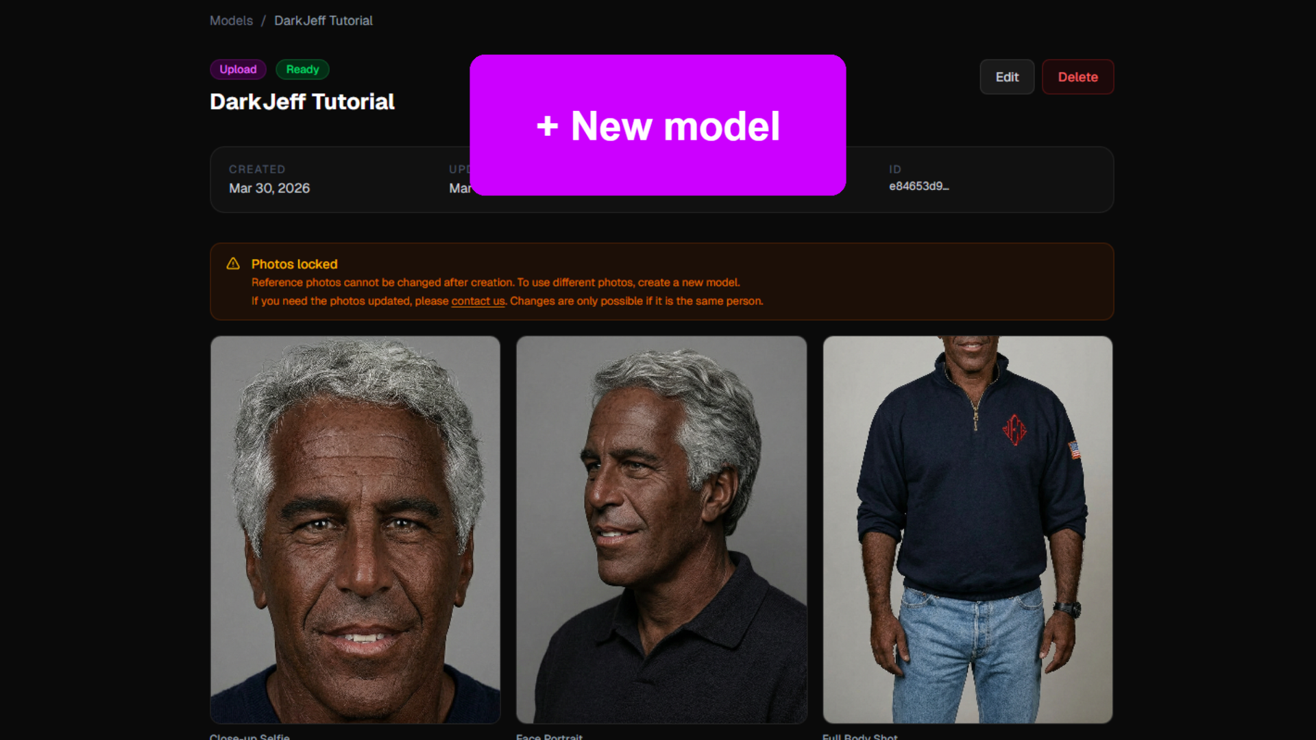 Watch short guides on creating models, generating photos, running identity recreation, and making videos with your AI clone.